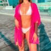 Get ready to dazzle on the beach with our incredible beach kimono! This kimono style features a tie belt to define your waist, enhancing your figure while keeping you comfortable. With elegant details on the sleeves and edges, this kimono adds a touch of glamour to your beach look. Additionally, being short and loose-fitting, it gives you a sense of freedom and freshness as you stroll along the shore or bask in the sun. With this kimono, you will be the star of the beach on any occasion.