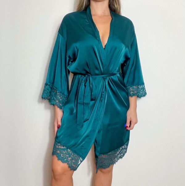96% polyamide, 4% elastane: This satin robe is an elegant and sophisticated lingerie piece. The satin gives it a touch of luxury and comfort, while the lace details on the sleeves and hem add a touch of sensuality and sophistication. The robe features a flowing design that drapes elegantly over your body, creating a seductive look. It’s perfect for completing your lingerie set or adding a touch of elegance to your intimate moments.