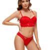 LEONOR SET: Bra and thong set. The bra has an underwire, push-up and boning for better support. It is made of lace and has gold metal ring trims that add a sexy touch. The panties are thong-style, made of lace and with a cotton lining. 90% polyamide, 10% elastane.