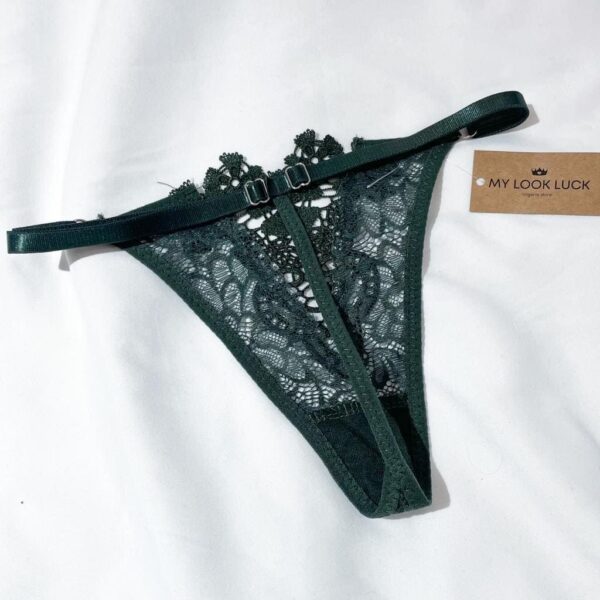 Madame: Side-tie thong with lace details and adjustable sides. Super sexy. 90% polyamide, 10% elastane.