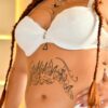 90% polyamide, 10% elastane. Lingerie set, underwired push-up bra with padding and thong. Details in lace and a sparkly charm.