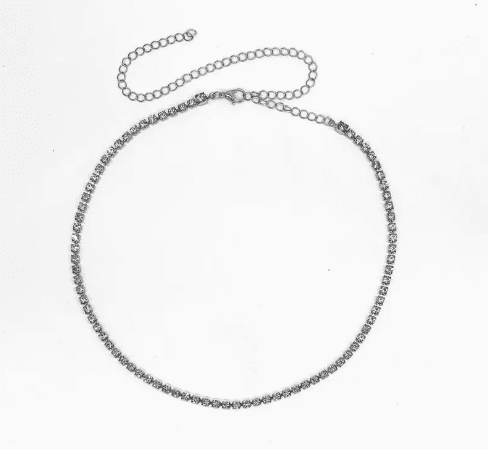 Rhineestone Garter: One-piece leg garter. Metallic garter with rhinestones. Has an adjustable closure. Adds a sexy and fun touch to any outfit, whether lingerie or evening wear.
