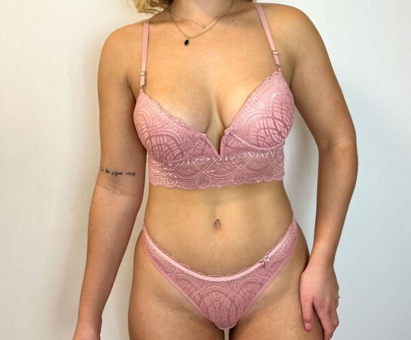 86% polyamide, 14% élasthanne. Ensemble court avec armatures et détail en V métallisé sur l’encolure (ce qui est idéal pour les vêtements très décolletés) et string. La dentelle est belle et brille lorsque la lumière frappe. Les armatures pour ajuster les bretelles sont en métal doré. Le t-shirt a des côtés légèrement plus longs, il est donc très confortable, il a également un nœud et une doublure de décoration. Cet ensemble est une pièce exclusive, fabriquée au Brésil. Super sexy et élégant, parfait pour un usage quotidien ou pour une occasion plus sexy.